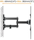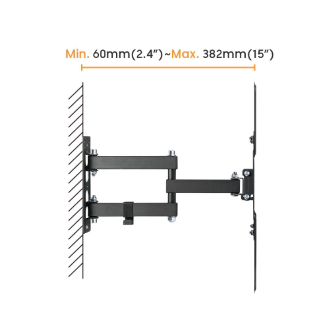 Výsuvný nástěnný držák LPA68-443 je určen pro instalaci TV s plochou obrazovkou s úhlopříčkami od 23“ do 55“. Má robustní výsuvnou konstrukci, díky níž unese TV o hmotnosti až 30 kg, zároveň je možné nastavit vzdálenost TV od stěny v rozsahu 60 mm až 382 mm. Samozřejmostí je pak také velký rozsah polohování. Držák umožňuje snadné naklápění TV v rozsahu +3°~-10° a natočení do stran v rozsahu +90°~-90°, což zaručuje pohodlné sledování z libovolného místa v místnosti. Integrovaná svorka na kabely udržuje kabely uspořádané a chráněné.