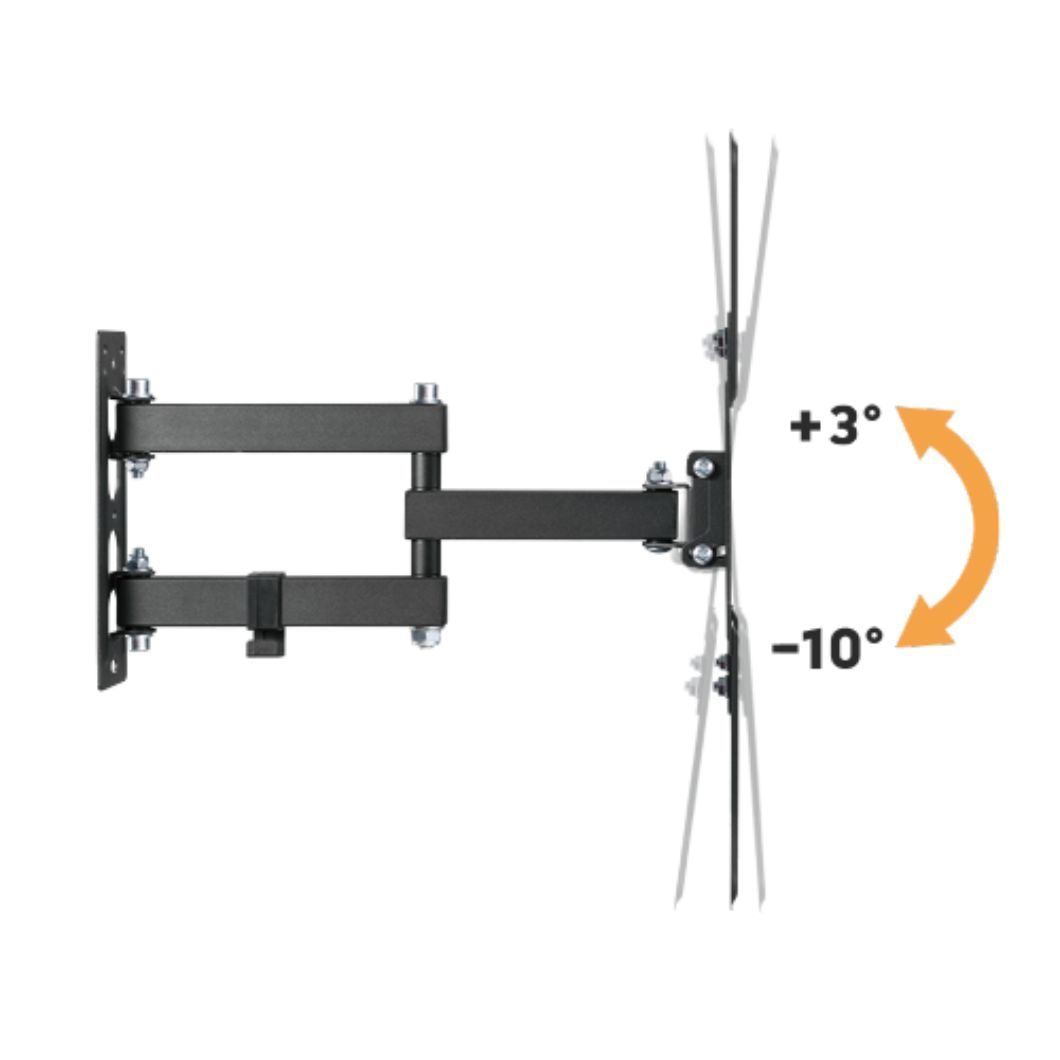 • Volně sklopitelná konstrukce pro jednoduchou změnu náklonu TV v úhlu +3°~-10°.