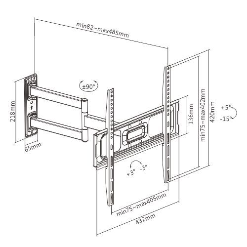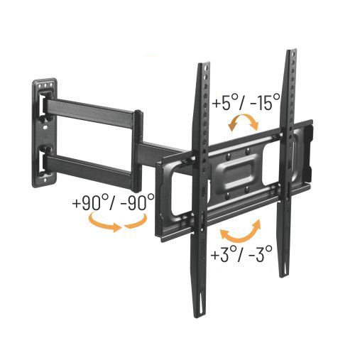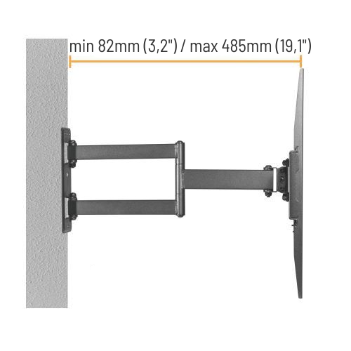 Výsuvný nástěnný držák LPA69-443 je určen pro instalaci TV s plochou obrazovkou s úhlopříčkami od 32“ do 55“. Jeho největší přednostní je robustní výsuvná konstrukce, díky níž unese TV o hmotnosti až 35 kg a zároveň umožňuje nastavit vzdálenost TV od stěny v rozsahu 82 mm až 485 mm, samozřejmostí je pak také velký rozsah polohování. Držák umožňuje snadné naklápění TV v rozsahu +5°~-15°, natočení do stran v rozsahu +90°~-90° a rotaci v rozsahu +3°~-3°, což maximalizuje flexibilitu sledování z libovolného místa v místnosti. Integrovaná svorka na kabely udržuje kabely uspořádané a chráněné.