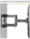 Výsuvný nástěnný držák LPA69-466 je určen pro instalaci TV s plochou obrazovkou s úhlopříčkami od 37“ do 80“. Jeho největší přednostní je robustní výsuvná heavy-duty konstrukce, díky níž unese TV o hmotnosti až 60 kg a zároveň umožňuje nastavit vzdálenost TV od stěny v rozsahu 58 mm až 402 mm, samozřejmostí je pak také velký rozsah polohování. Držák umožňuje snadné naklápění TV v rozsahu +5°~-15°, natočení do stran v rozsahu +60°~-60° a rotaci v rozsahu +3°~-3°, což maximalizuje flexibilitu sledování z libovolného místa v místnosti. Integrovaná svorka na kabely udržuje kabely uspořádané a chráněné.
