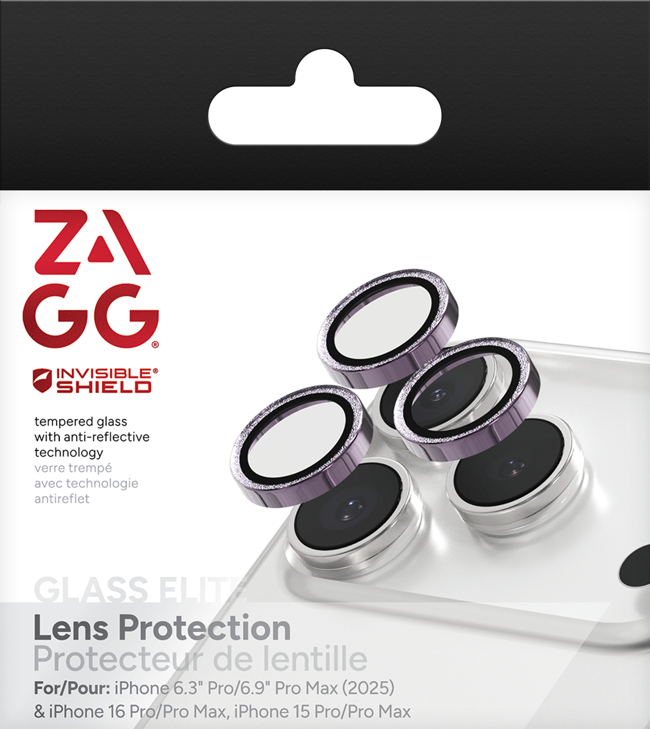 ZAGG InvisibleShield Premium Glass (Camera) Apple iPhone 17 Pro/17 Pro Max/16 Pro/16 Pro Max/15 Pro/15 Pro Max PurpleGLTR