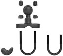 RAM-B-231ZU, ideální pro řídítka motocyklů, se skládá z 1" gumové koule velikosti B připevněné k pozinkované kovové základně U-šroubu. Navržena tak, aby seděla v pravém úhlu k montážní liště, základna U-šroubu pojme lišty od 0,5" do 1,25" v průměru. Součástí jsou černé krycí krytky, které se umístí přes exponované konce U-šroubu, a také kompozitní adaptér, který může zúžit kolejnici na minimální šířku 0,5".