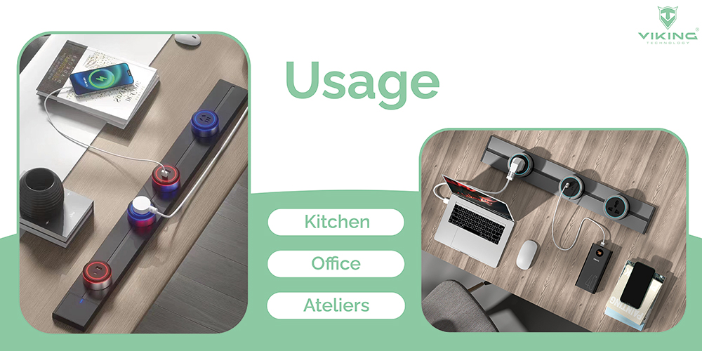 •Široké možnosti použití: Ideální pro kanceláře, kuchyně, obývací pokoje, ateliéry, obchody a další prostory, kde potřebujete spolehlivé a elegantní řešení pro nabíjení a připojení zařízení.